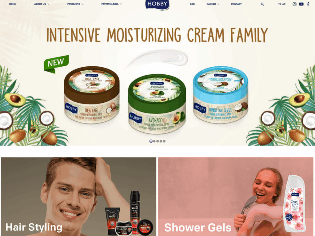 Hobi Kozmetik lists its factory contact details and shows a history of brand-building which indicates a structured setup. Their product pages for shower gel mention customised formulations and packaging options.