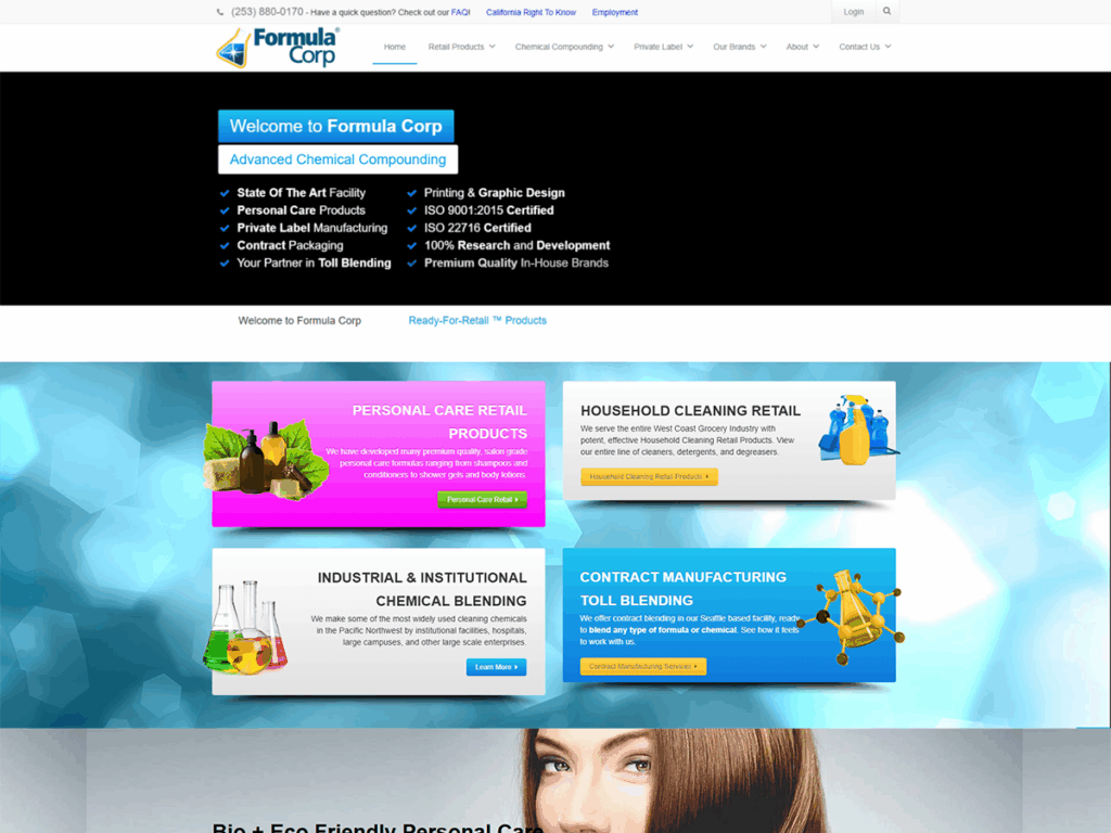 Formula Corp states that their facility is ISO 22716 certified and their team uses third-party auditors and labs for testing, including preservative challenge, skin patch tests, stability and other performance metrics.