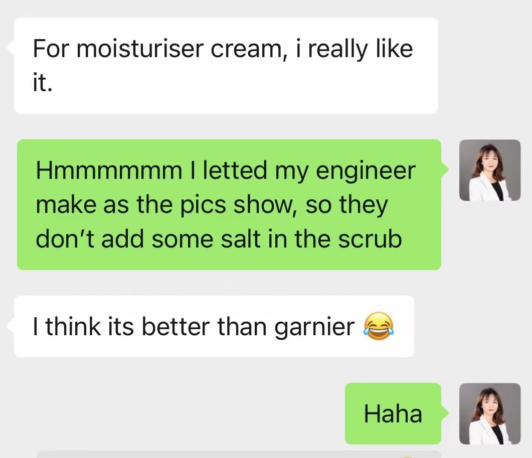 The client was happy that even before she received her initial order, she placed a new order of 100kg of sunscreen.