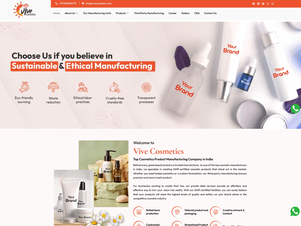 | Vive Cosmetic | Broad portfolios | Punjab, India | 2016 | Low–Mid | ISO 9001:2015, GMP, FDA, Cruelty-Free | Standard cream, renewal lotion, brightening cream, body cream | High-end retail lines |