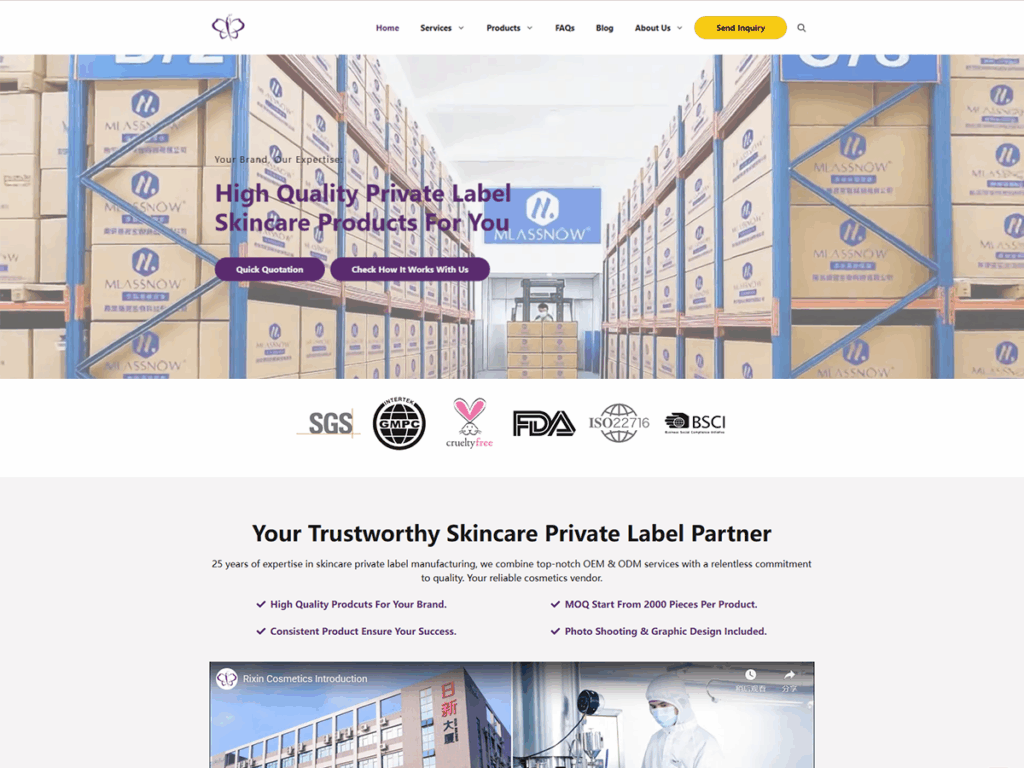 - Positioning: OEM cosmetic producer specializing in cost-friendly formulas and large-scale supply